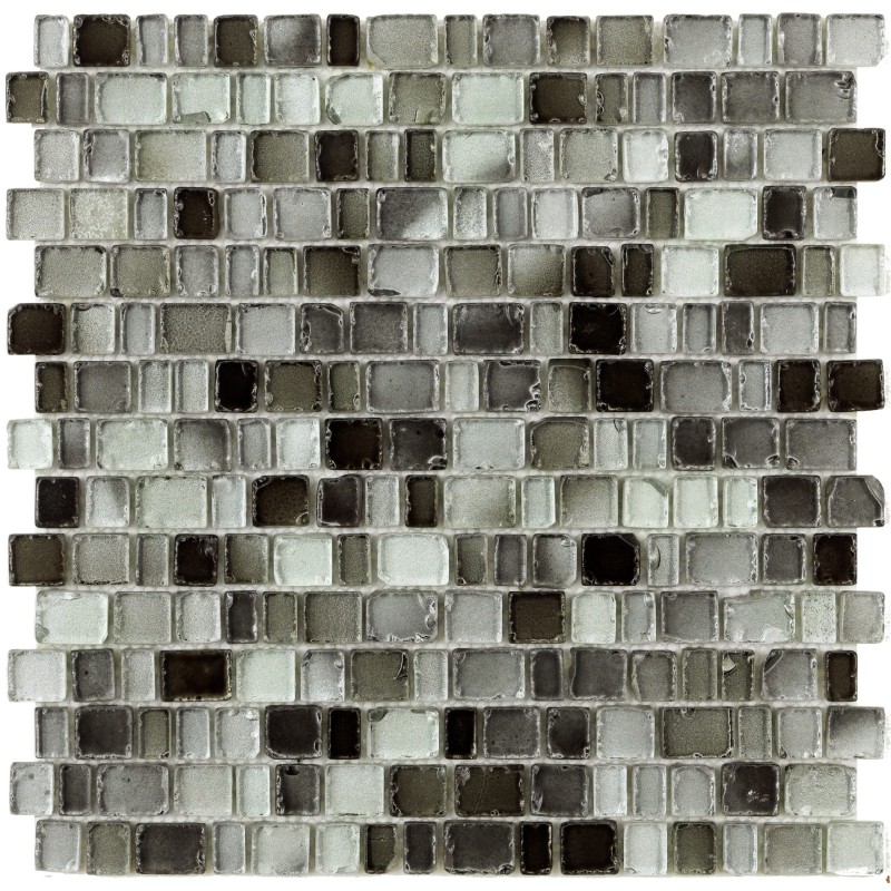 Multiformat-Mosaik aus Kristallglas, erhältlich in vier bewegungsreichen Farbvarianten: Fulvo, Kaki, Oliva und Cenere entfalten eine breite Palette von Nuancen, die durch die Aufteilung einer mit einem Farbverlauf dekorierten Glasplatte in zahlreiche Schattierungen derselben Farbe erzielt werden.