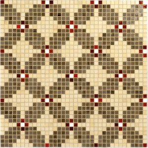 Dieses Mosaik kann auch auf dem Fußboden verwendet werden, da es sich bei der Glaspaste um ein farbiges Massenprodukt handelt, dessen allgemeines Erscheinungsbild durch die Abnutzung durch Schritte nicht beeinträchtigt wird.