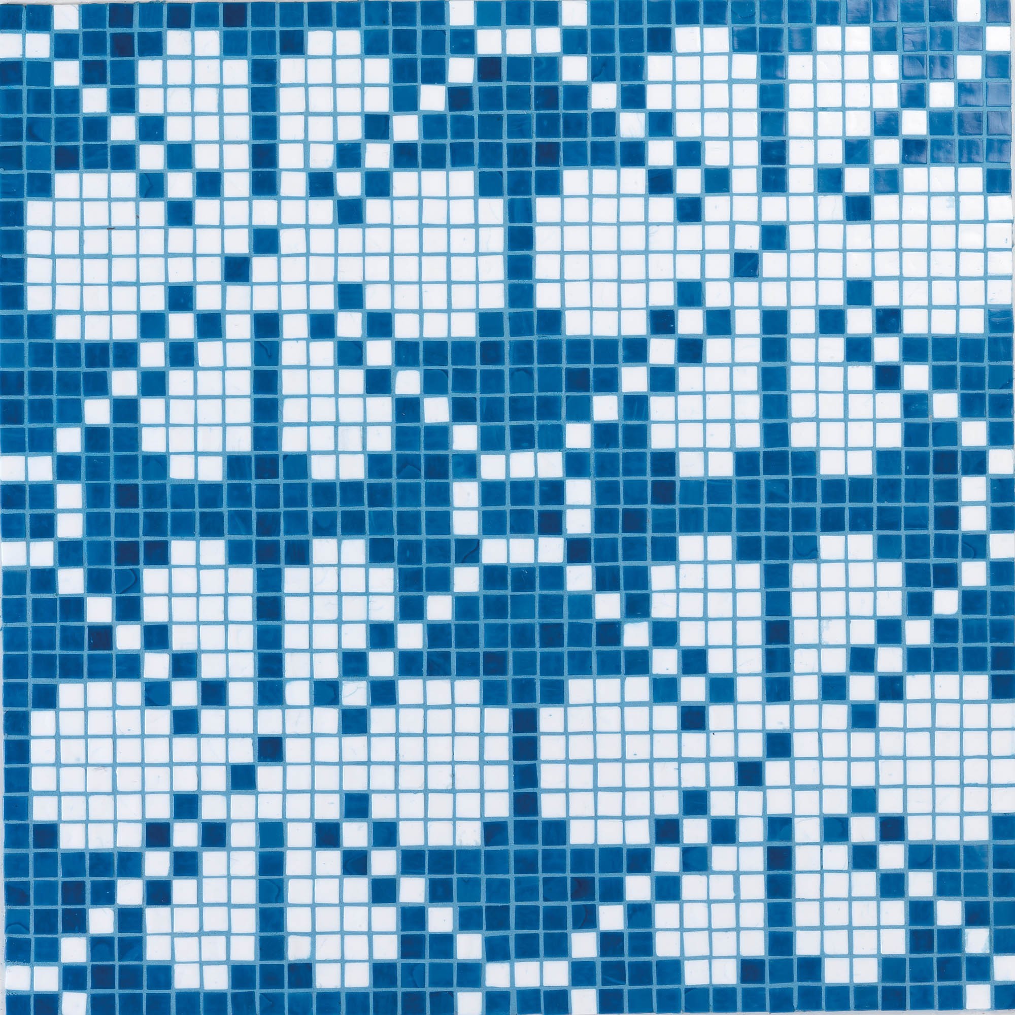 Genziana ist ein Mosaik aus geschmolzenem Glas, das seine satten und intensiven Farben aus der Kollektion R.A.L. bezieht und aus 1,5×1,5 cm großen und 4 mm dicken Glaspaste-Steinen hergestellt wird.