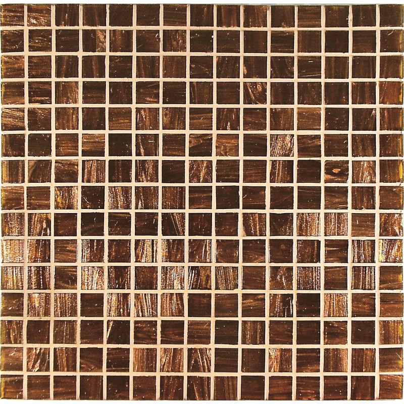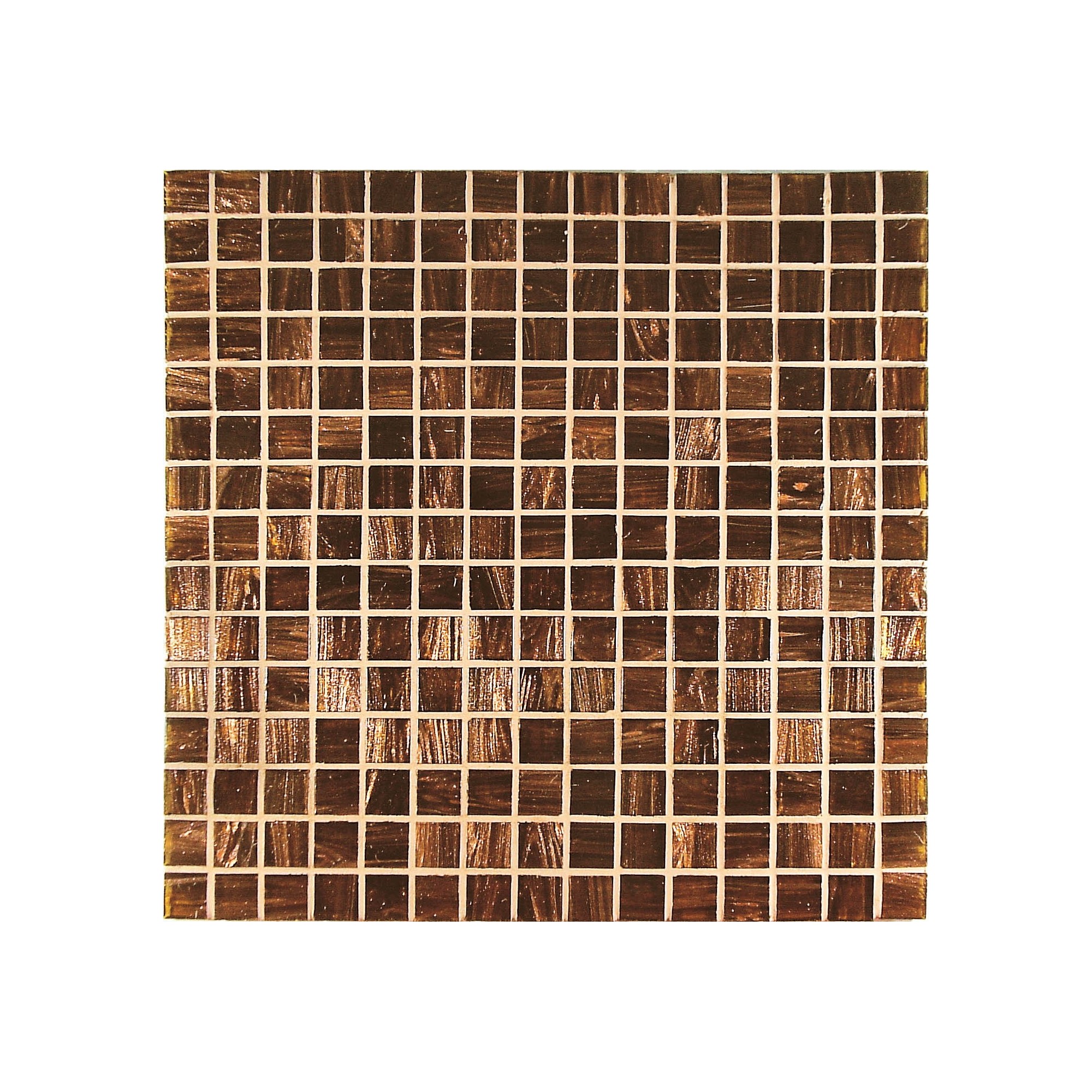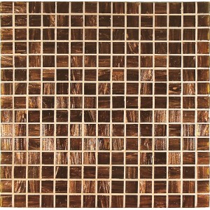 Gold/Bronze 2×2 bietet ein regelmäßiges Raster aus quadratischen Fliesen, 2 cm pro Seite, in Modulen von 32,5 x 32,5 cm, die auf einem Glasfasernetz montiert sind.