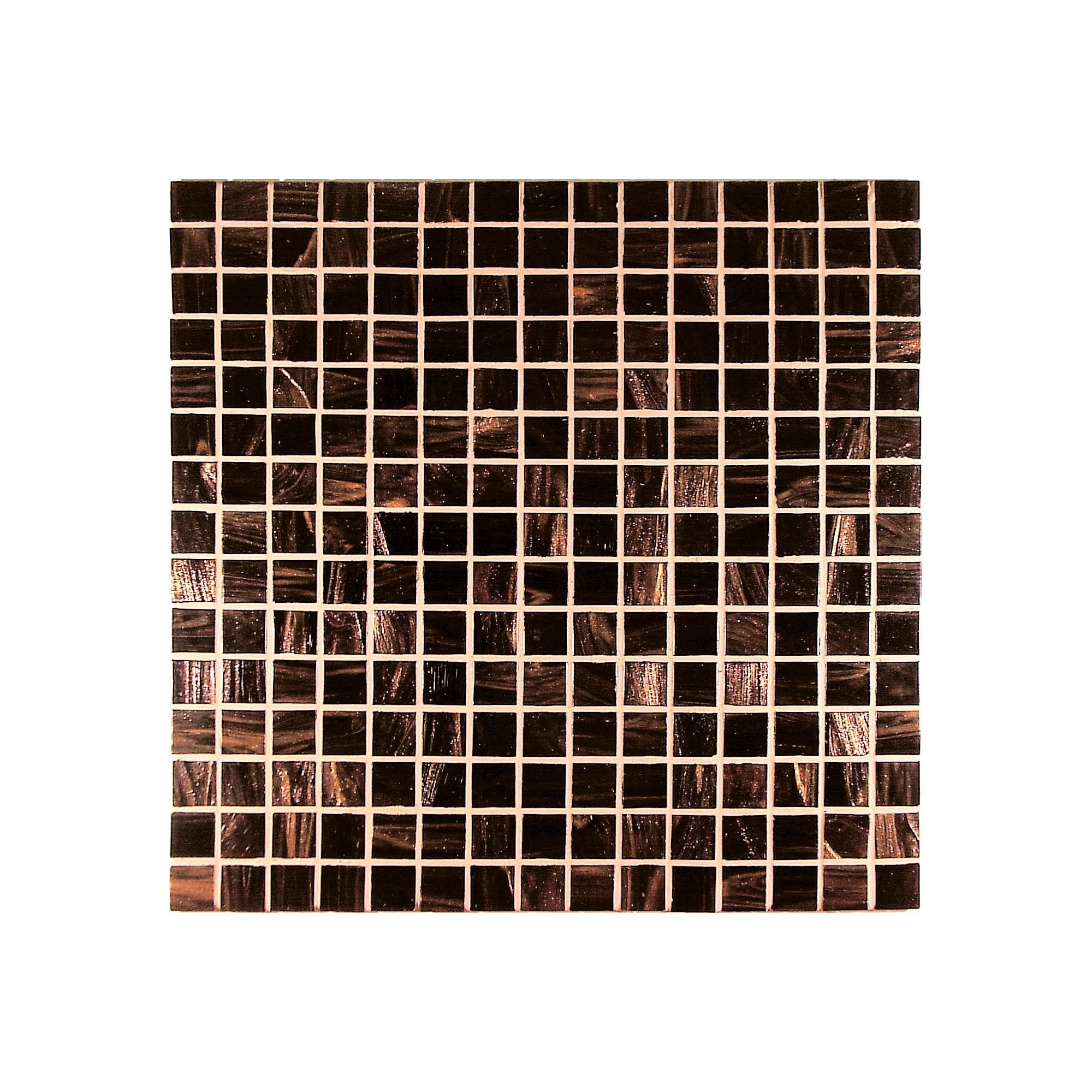 Gold/Bronze 2×2 bietet ein regelmäßiges Raster aus quadratischen Fliesen, 2 cm pro Seite, in Modulen von 32,5 x 32,5 cm, die auf einem Glasfasernetz montiert sind.