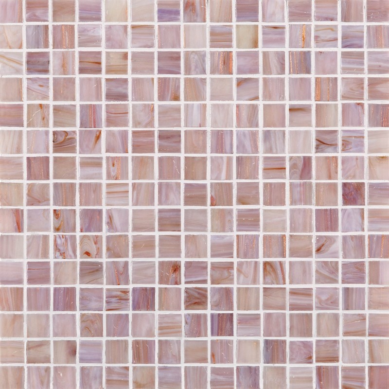 Bei den siebzehn kompakten Unifarben dieses Glasmosaiks verleiht die unterschiedliche Ausrichtung der Streifen der verlegten Fläche eine angenehme Bewegung.