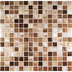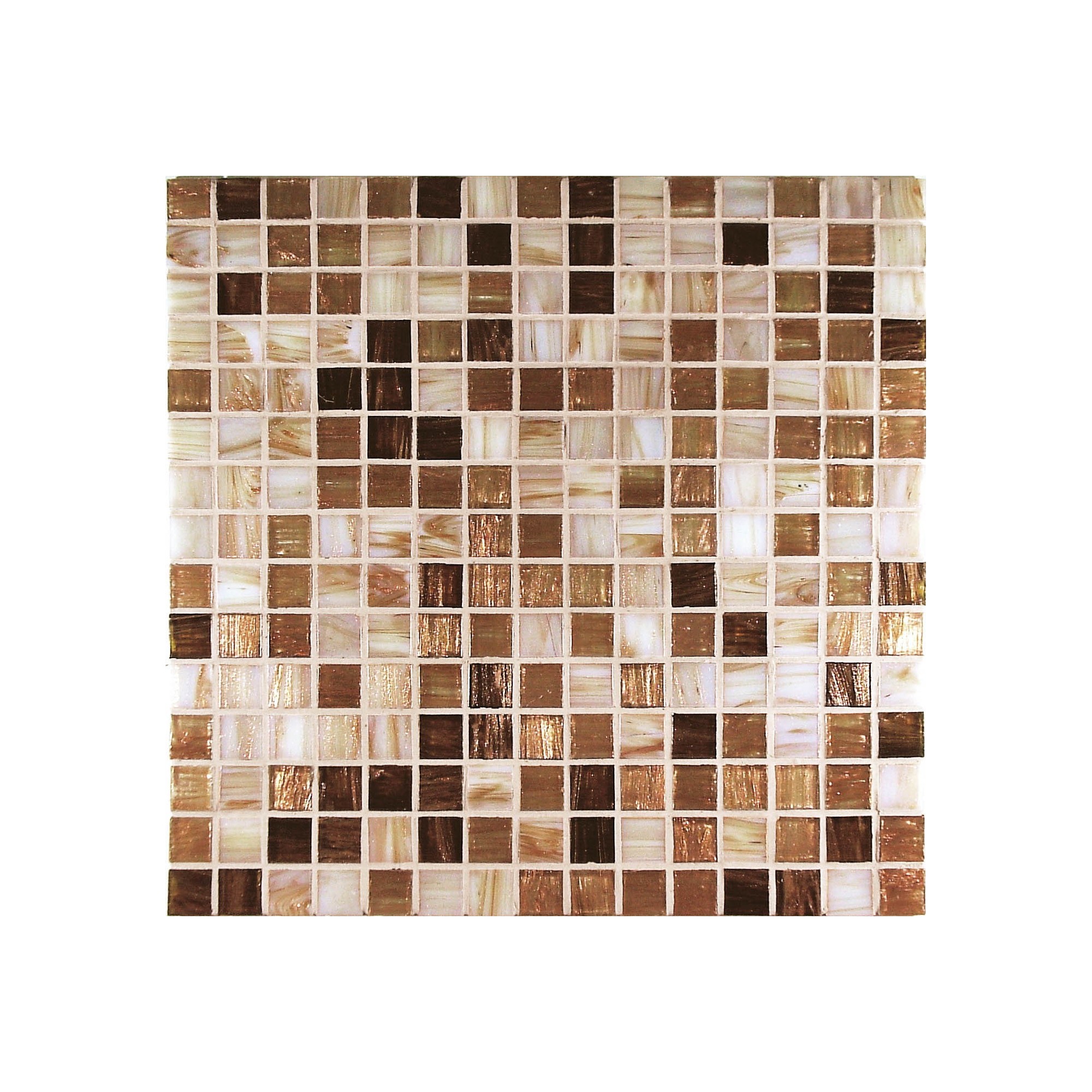 Gold/Bronze 2×2 bietet ein regelmäßiges Raster aus quadratischen Fliesen, 2 cm pro Seite, in Modulen von 32,5 x 32,5 cm, die auf einem Glasfasernetz montiert sind.