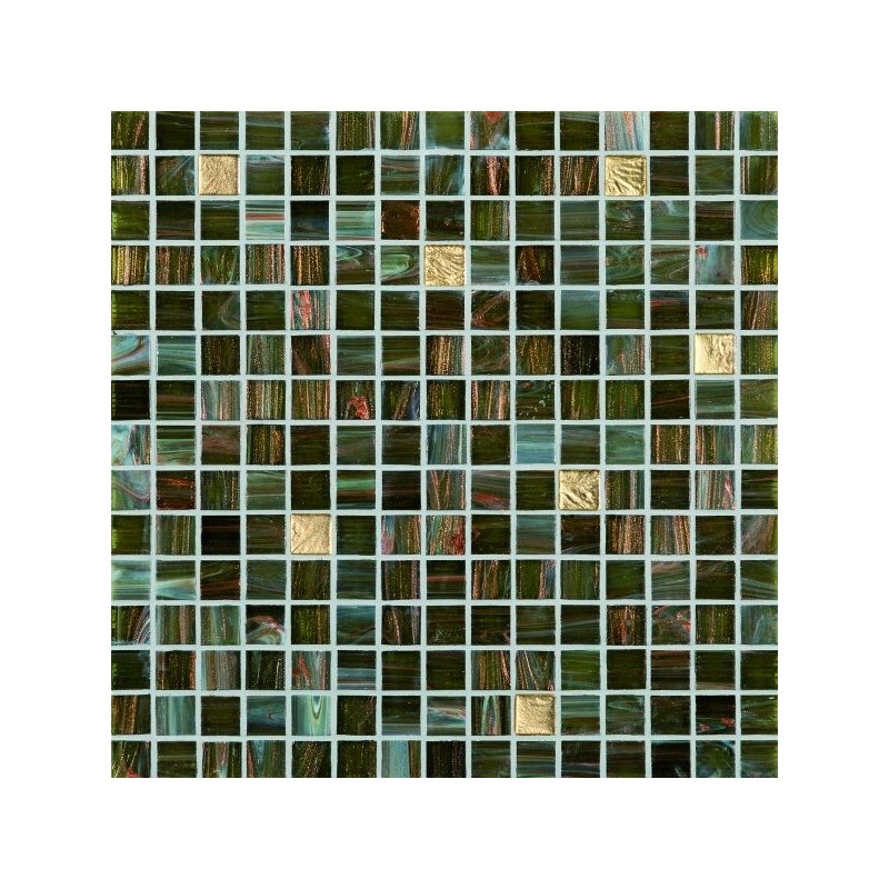 Die Glaspaste, die aus farbigem Glaspulver besteht, das durch das Vorhandensein von feinem Quarzsand verdichtet wird, wird in diesem Fall durch Aventurin, ein in die Glasschmelze eingefügtes Halbedelmetall, bereichert: Die charakteristischen bronzefarbenen Schlieren mit Schattierungen, die zu Rost und Messing tendieren, verschmelzen mit der Hintergrundfarbe, der sie wertvolle metallische Noten hinzufügen; die unterschiedliche Ausrichtung dieser Schlieren verleiht der verlegten Oberfläche eine angenehme Bewegung.