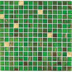 Die Glaspaste, die aus farbigem Glaspulver besteht, das durch das Vorhandensein von feinem Quarzsand verdichtet wird, wird in diesem Fall durch Aventurin, ein in die Glasschmelze eingefügtes Halbedelmetall, bereichert: Die charakteristischen bronzefarbenen Schlieren mit Schattierungen, die zu Rost und Messing tendieren, verschmelzen mit der Hintergrundfarbe, der sie wertvolle metallische Noten hinzufügen; die unterschiedliche Ausrichtung dieser Schlieren verleiht der verlegten Oberfläche eine angenehme Bewegung.