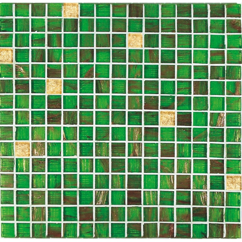 Eine Kollektion von Glasmosaiken, die durch das Vorhandensein von goldähnlichen Fliesen mit Gelbgold- oder Weißgold-Effekt vereint werden, die nach dem Zufallsprinzip über das Modul verteilt sind (7 Fliesen pro Platte).