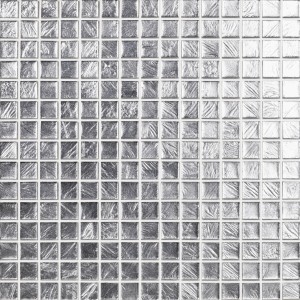 Eine Kollektion von Glasmosaiken, die durch das Vorhandensein von goldähnlichen Fliesen mit Gelbgold- oder Weißgold-Effekt vereint werden, die nach dem Zufallsprinzip über das Modul verteilt sind (7 Fliesen pro Platte).