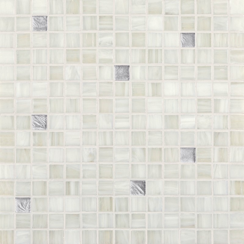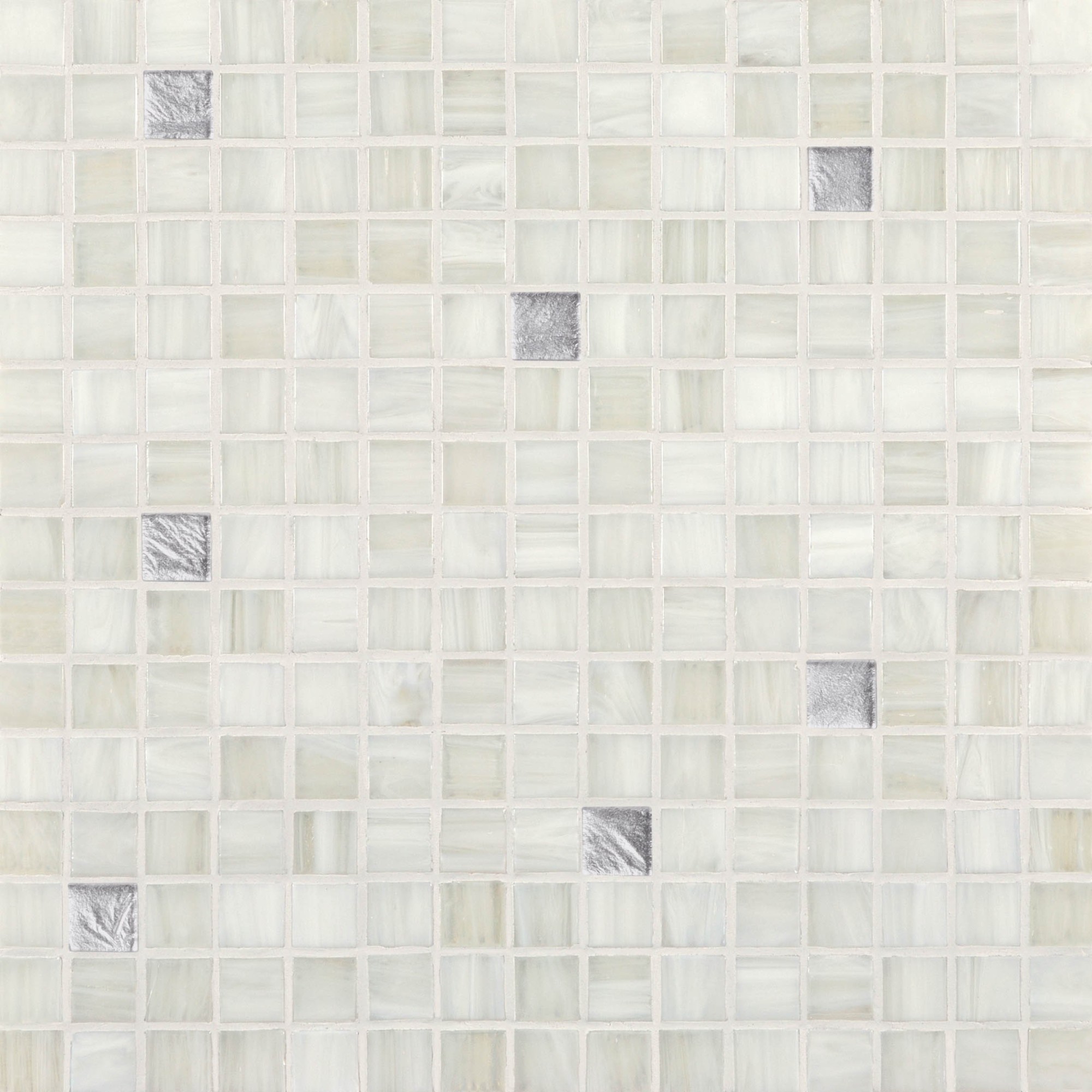 Eine Kollektion von Glasmosaiken, die durch das Vorhandensein von goldähnlichen Fliesen mit Gelbgold- oder Weißgold-Effekt vereint werden, die nach dem Zufallsprinzip über das Modul verteilt sind (7 Fliesen pro Platte).