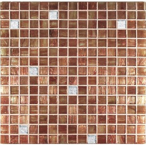 Die Glaspaste, die aus farbigem Glaspulver besteht, das durch das Vorhandensein von feinem Quarzsand verdichtet wird, wird in diesem Fall durch Aventurin, ein in die Glasschmelze eingefügtes Halbedelmetall, bereichert: Die charakteristischen bronzefarbenen Schlieren mit Schattierungen, die zu Rost und Messing tendieren, verschmelzen mit der Hintergrundfarbe, der sie wertvolle metallische Noten hinzufügen; die unterschiedliche Ausrichtung dieser Schlieren verleiht der verlegten Oberfläche eine angenehme Bewegung.