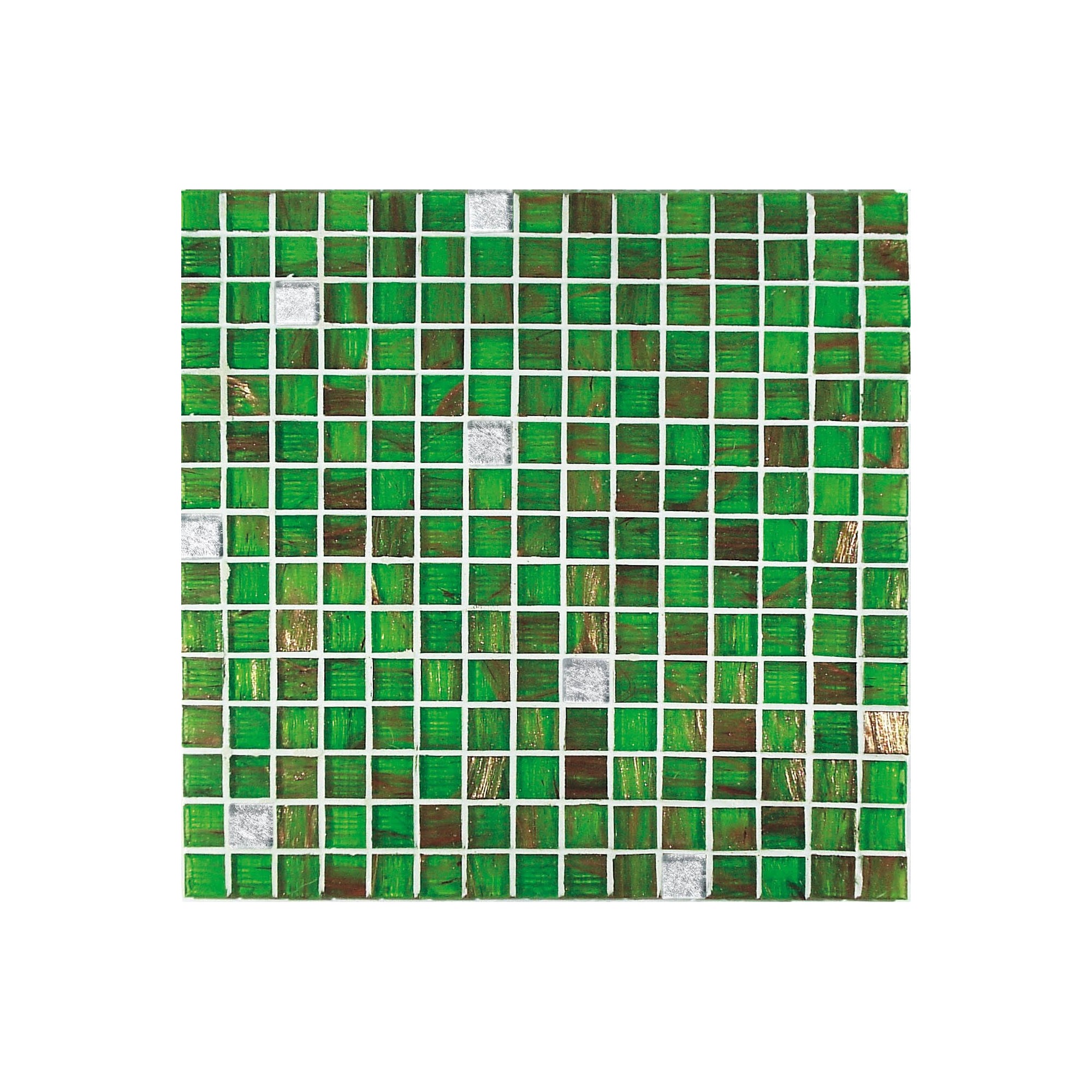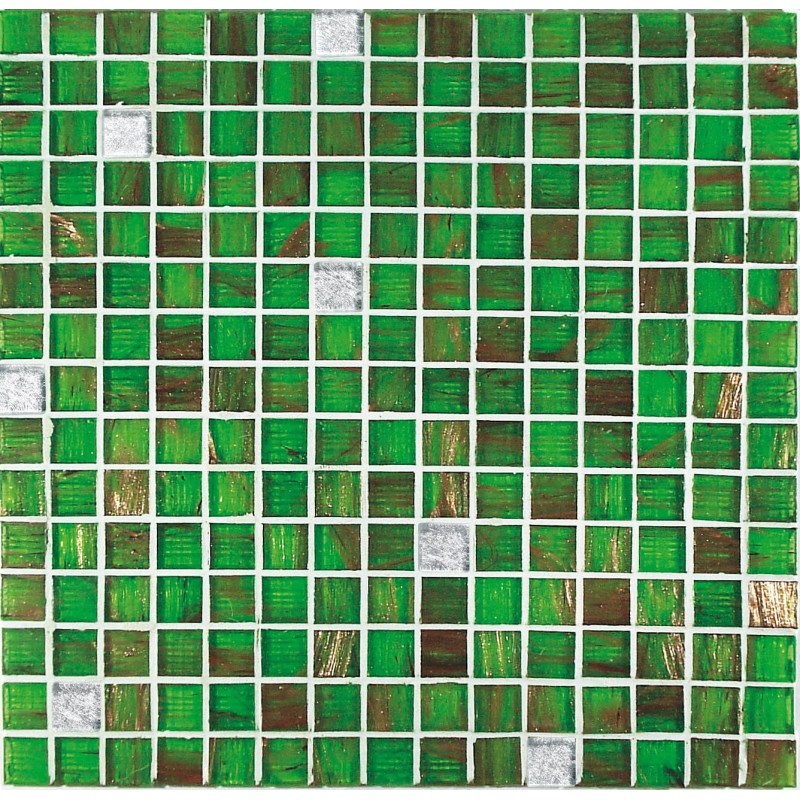 Die Glaspaste, die aus farbigem Glaspulver besteht, das durch das Vorhandensein von feinem Quarzsand verdichtet wird, wird in diesem Fall durch Aventurin, ein in die Glasschmelze eingefügtes Halbedelmetall, bereichert: Die charakteristischen bronzefarbenen Schlieren mit Schattierungen, die zu Rost und Messing tendieren, verschmelzen mit der Hintergrundfarbe, der sie wertvolle metallische Noten hinzufügen; die unterschiedliche Ausrichtung dieser Schlieren verleiht der verlegten Oberfläche eine angenehme Bewegung.