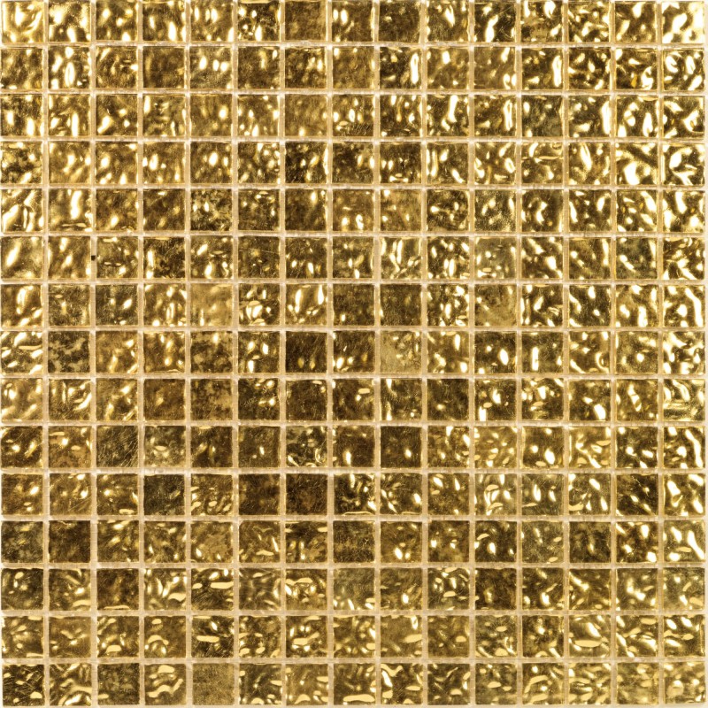 I Gioielli ist eine Kollektion von vier Kristallglasmosaiken, die ihrem Namen alle Ehre macht: Der Glanz des Gelb- und Weißgoldes entsteht durch die Aufbringung eines kostbaren Blattes aus echtem 24-karätigem Gold auf der Rückseite des 4 mm dicken, extraweißen Glases.