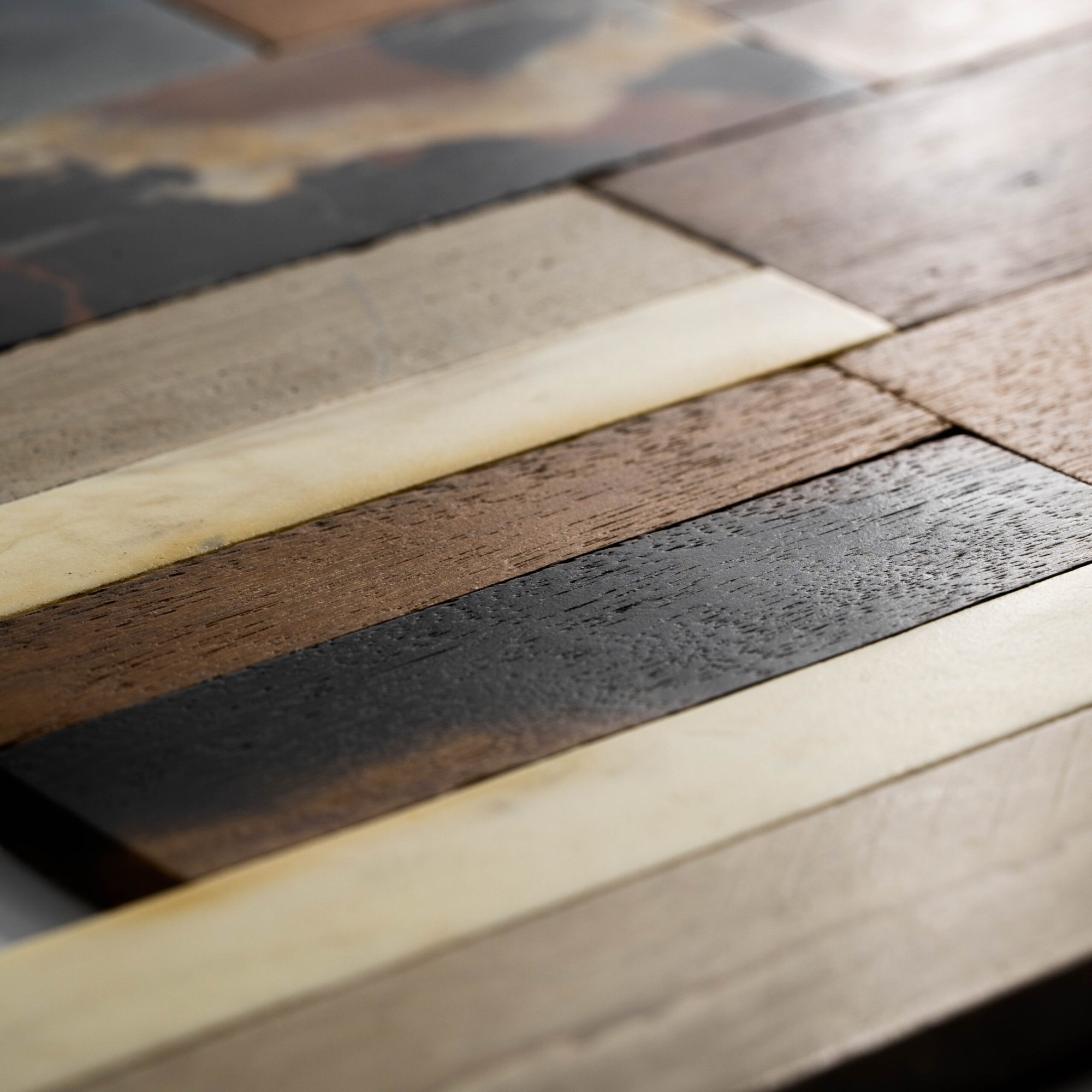 Mosaik aus wiederverwendetem nautischem Holz und Naturstein, geeignet für Böden und Wände in Wohnräumen und öffentlichen Gebäuden; auch für Bäder und Küchen geeignet. Nicht geeignet für Duschen in Innenräumen, Spas oder Schwimmbäder.