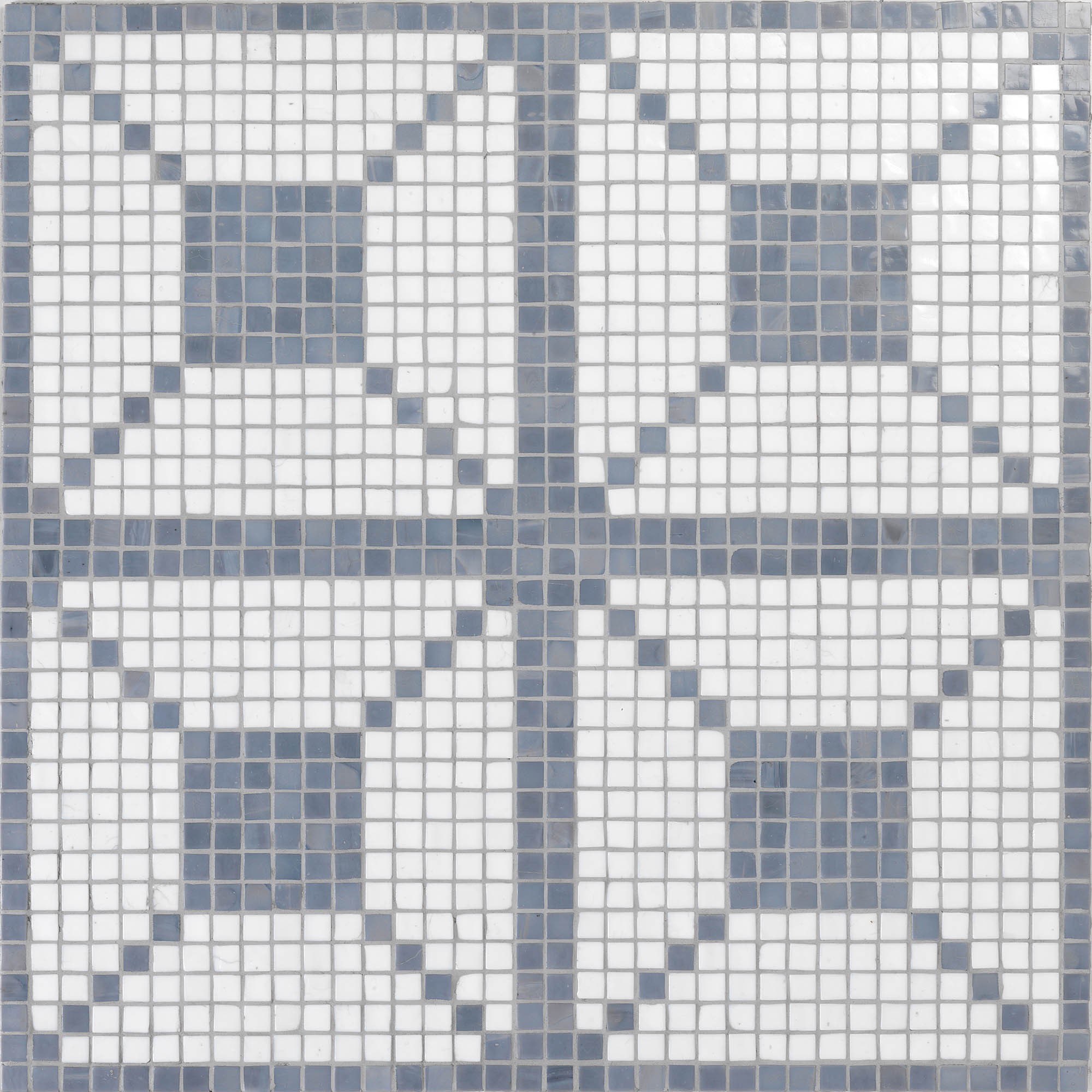 Die Verwendung von nur zwei Farben erzeugt einen starken Kontrast, der die grafische Komponente hervorhebt: ein geordnetes Gitter aus Quadraten, die in Rahmen eingefasst sind. Die Fliesen messen 1,5×1,5 cm und sind 4 mm dick. Sie stammen aus der Serie R.A.L. und ermöglichen es, jedes dieser Mosaike mit monochromen Modulen in einer der beiden Farben zu kombinieren, aus denen sie bestehen.