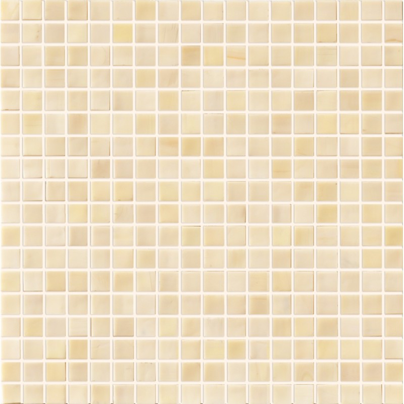 Ein weiterer grundlegender Bestandteil ist die farbgebende Emaille, die in diesem Glasmosaik in beträchtlichen Mengen vorhanden ist, so dass einfarbige Hintergründe eine breite Palette von Farbnuancen entfalten können.