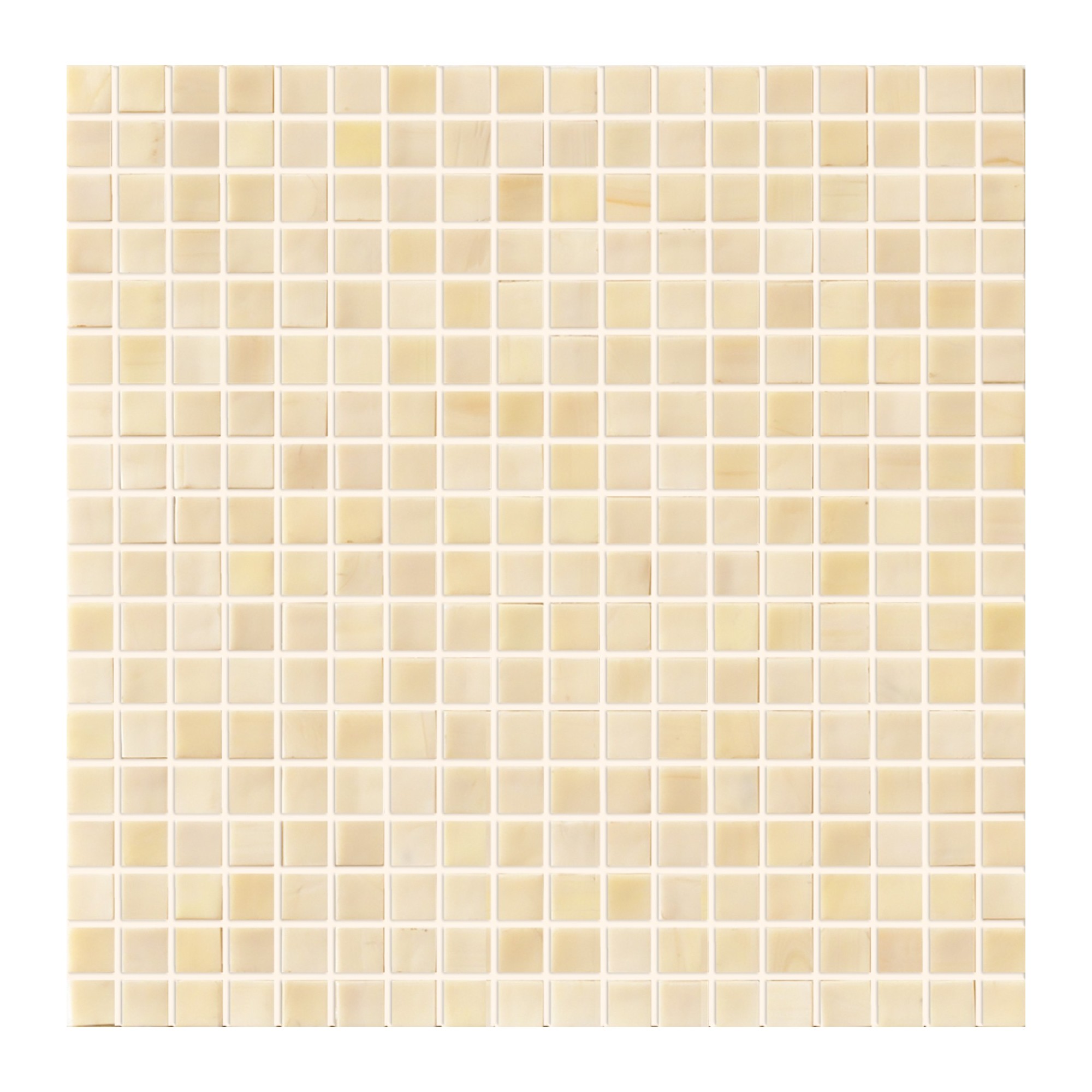 Die gewundene Unregelmäßigkeit, die die 1,5 x 1,5 cm großen Fliesen charakterisiert, wird durch das beidseitige Abrollen des Mosaiks kurz vor der Fixierung in Wasser erreicht.