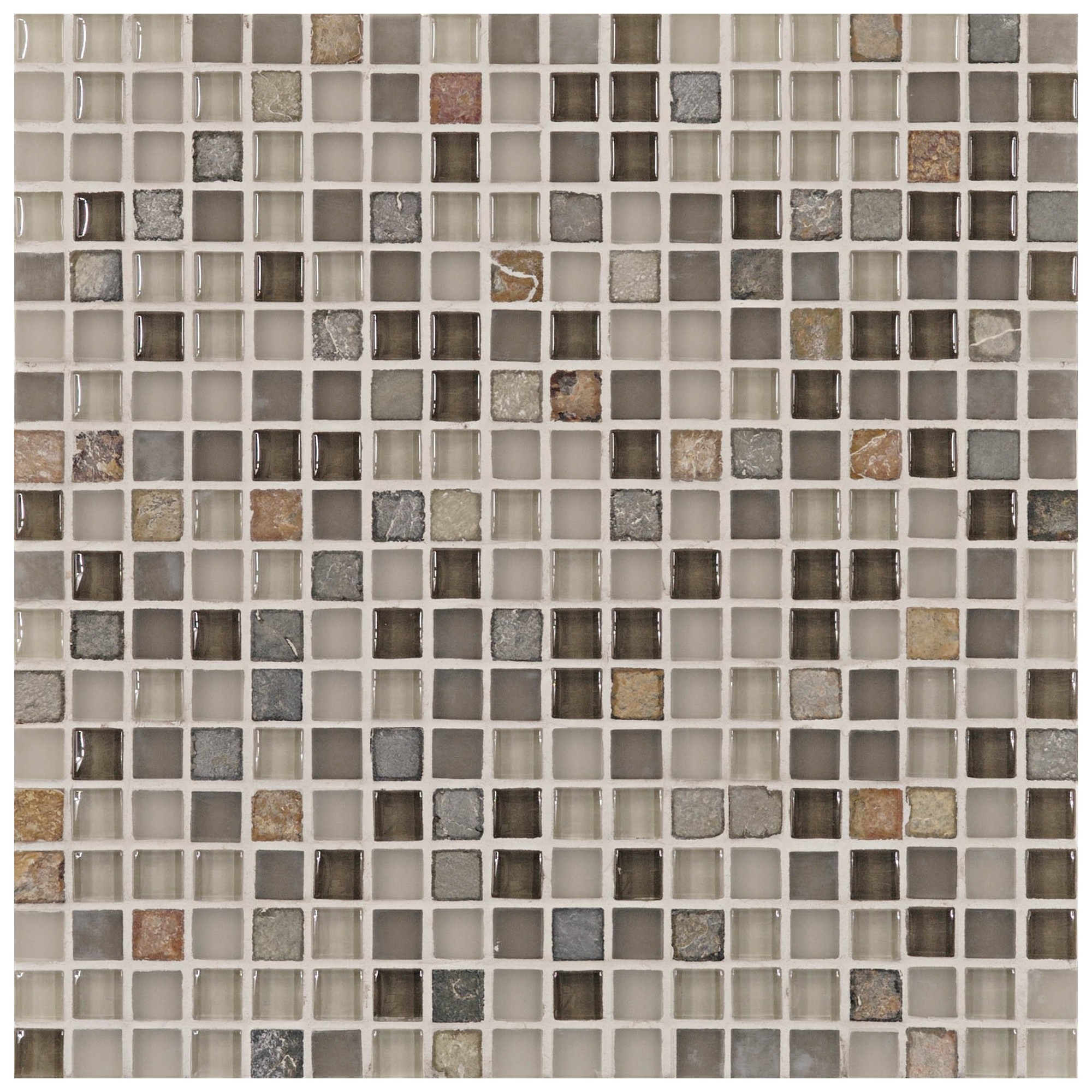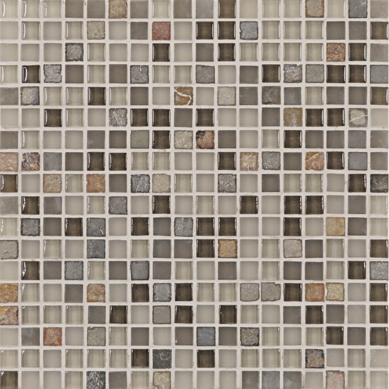 Slate ist ein Naturstein- und Glasmosaik, das sich für jede Innenverlegung eignet.