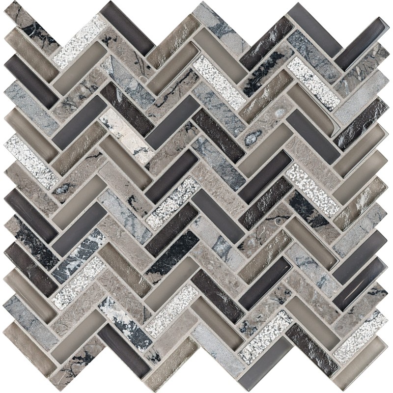 Kristallglas- und Natursteinmosaik, empfohlen für alle Innenverlegungen, einschließlich Duschen und Küchen.