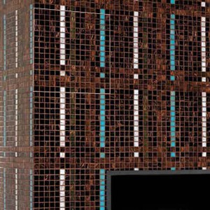 Die Fliesen dieses vollflächigen farbigen Glasmosaiks sind 2×2 cm groß, 4 mm dick und gehören zur Kollektion Gold/Bronze 2×2.