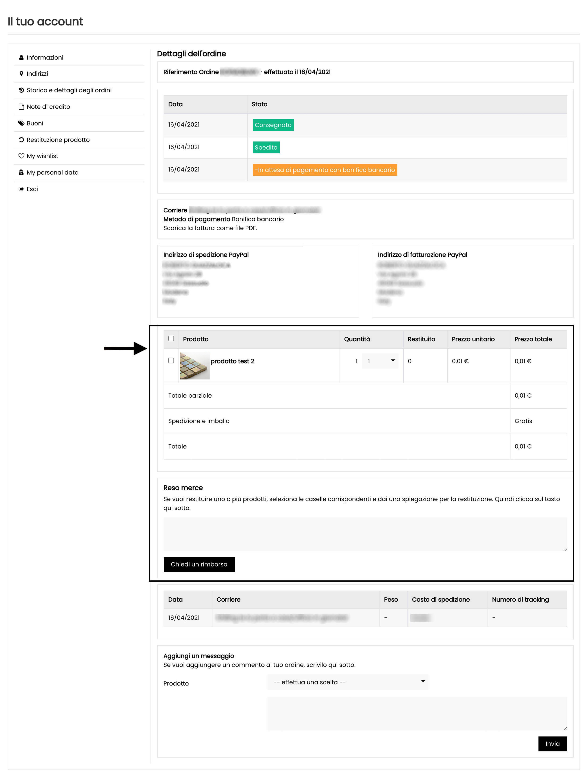 In questi casi la merce verrà restituita al mittente all’indirizzo di spedizione originale.